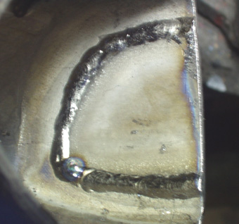 アップにしてよく見ると、内部方向からの溶接ですが、 最終的にどうして組み上げてるのか益々分からなくなりました。 |