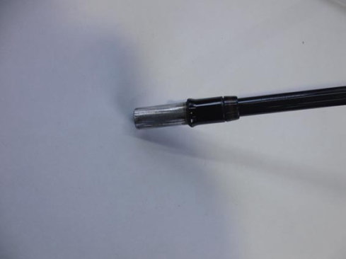 グリップエンド側の折れた片方もひびが入り、これは使用できません。 不用の在庫シャフトから径に会ったシャフトを1日掛かりで探し出し、キチット径を合わせ元の長さに調整し やっとの事で修理完了! |